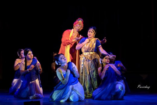 Sankalpa 2018: A festival of dance by Nrittyoday - Dr. Nita Vidyarthi e-mail: nitavidyarthi@gmail.com Photos courtesy: Nrittyoday October 24, 2018 Sankalpa 2018 was the fifth year celebration of the institution 'Nrittyoday-Creators of Creativity' at the Gyan Manch, Kolkata, through an assortment of dance presentations choreographed by the talented young dancer Bidhan Roy Chowdhury. Bidhan heads Nrittyoday and is trained in Bharatanatyam with Anita Mallik while mastering the Uday Shankar style from childhood from Mamata Shankar. He introduced a daring novelty this year by experimenting with a popular Hindi film song of yesteryear on the light of the Jayadeva ashtapadi "Priya Charushiley." Of course, he did not forget to stage the youngest learners of his institution with appropriate joyous numbers, composed, keeping in mind their age and abilities.The format and nature of the presentations were similar to the earlier Sankalpa editions. Single short pieces were set to popular Bengali adhunik (modern) songs. The first half was devoted to traditional Bharatanatyam beginning with a convincing Pushpanjali in ragam Aarbi, talam adi, followed by "Mushika Vahana" in ragamalika by a group of little girls. Then came the gratifying solo "Ananda Tandava Ganapati" by Bidhan in ragam Hamsadhwani, talam adi choreographed by his guru and performed in front of her watchful eyes. The physical beauty of the sharp, linear masculine movements under tenacious control of the tall dancer was distinctly felt in his neat adavus and teermanams. Anita Mallik congratulated him for his performance. "Gajananayutham", a well choreographed, ragam Ragachakravaka, adi talam based item by four finely dressed male dancers appeared a bit too vigorous at times resulting in the loss of elegance. Rahul Deb, a guest Kathak dancer and a disciple of Rajendra Gangani, has already made a name in the dance circuit and his entry with a fast paced "Om Shankar Kailashpati" embellished with chakkars spoke of a fine riyaz. His energetic nritta had sparkle in the lovely jumps while arriving pat on the sam and displayed good grip on rhythm. The Kavit "Om damaru baaje" was a neat blend of the Lucknow and Jaipur gharana and had the stamp of his guru. It was a pleasure to watch his chakradhar paran. ![]() Ehsan tera The second half was devoted to Uday Shankar dance form opening with "Ehsan tera" based on the hit Hindi film song "Ehsan tera hoga mujhbar" of the sixties amalgamated with the nuances or essence of "Priye charushiley". Well-known Hindustani classical and Rabindrasangeet singer Sounak Chatterjee had harmoniously blended this popular number with soulful bandishes of Hindustani classical music. Sargams with variations of the ragas was streaming into the strumming of guitar that was pouring out lilting western melody within the frame of the antara. His voice was an asset at the interludes of the song choreographed by Bidhan, who made a prominent romantic Krishna dancing with exquisite majesty. The dancing of the group of sakhis with senior dancer Sreeparna Chatterjee as a rather inappropriate Radha, both in execution and in deport was hardly visible because of the ultra violet lights reflected from the shimmering white costumes and diffusing from the cloud of smoke pumped into the stage from every corner. The expressions of impassionate involvement of Radha and Krishna so important in this number lay buried in the haze. This idea of unnecessarily mystifying a sequence and creating an illusion is now an ever increasing practice that prevents the detailed movements of the dancers from reaching the audience. Music overpowered the dancing in this effort which could have been more interesting with a bit more imagination. ![]() Bidhan Roy Chowdhury Juniors presented joyous numbers with popular songs. Anup Ghoshal's "Aha ki Ananda" from Satyajit's Ray's block buster "Goopi Gayen Bagha Bayen" and jazzy "Kanamachhi" (the game of blind man's bluff) sung by Shaan was entertaining. Fourteen mixed group of seniors established their training with the mood of soulful romantic song "Kholo daar badhua royechhi je dadaye" (Please open the door, dear, I am waiting) by Iman Chakravarty. The bright costumes especially the lehenga for the female dancers, the blend of styles and the symphony music enhanced the appeal of this number. ![]() Uday Shankar style ![]() Shradhanjali One never gets tired of hearing the composition Shradhanjali by the Late Ananda Shankar. Four male dancers together with Bidhan gave a creditable performance with this number that had lovely sways and body inflections. Devdasee was another touching number inspired by Tagore's poem Pujarini with music by Ustad Amjad Ali Khan and his sons. Group numbers Rangamaati (sung by Shaan) had a folksy style; Aakash Daake and Tindana were by children. Senior students presented their own choreography showing freedom of movement and thought that was quite elaborate and displayed something beyond the decorative technical flashes. The dancers had good training but wandered off in their execution. Another imaginative idea of the five elements was woven in "Surer Dhara" based on Tagore's poems and songs. He used songs involving conch shell as representative of water, the poem "Ogo Banshiwala" (O flute seller), flute for air and the like. In between there was felicitations in batches of the large number of dignitaries apart from his two gurus. Bidhan should plan a shorter Sankalpa in future. Three and a half hours is too long a time to avoid monotony and keep the audience in thrall till the end. Dr. Nita Vidyarthi is a veteran critic of performing arts and writes on dance, music and theatre in leading publications. |
