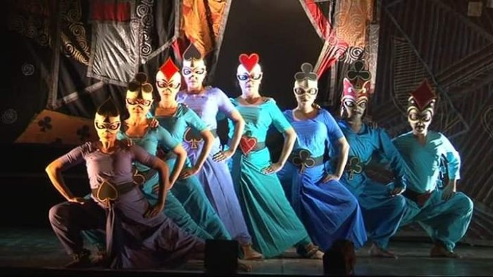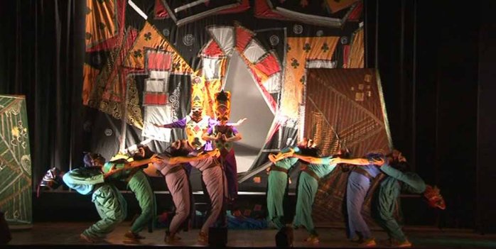 85th birth anniversary of Dr. Manjusri Chaki Sircar at Kolkata - Nita Vidyarthi e-mail: nitavidyarthi@gmail.com Photos courtesy: Parbati Gupta October 15, 2019 To commemorate the 85th birth anniversary of the acclaimed dancer, the late Dr. Manjusri Chaki Sircar on the 29th of August, Dancers' Guild, presented an evening of dance at the Sisir Mancha, Kolkata. Chaki's dance style and her 'Navanritya' methodology did not adopt the different dance forms, be it Indian classical or otherwise, but it was a manifestation of how the body consciously negotiated and processed the various cultural forms thereby becoming a significant form of representational practice which was universal. This was her Navanritya which was again a result of her international journeys and lived experiences in Africa and North America. They looked familiar but yet were entirely different. What was evident in the style was its taut integration of the body movements and its freedom which gave it a picturesque morphing fluidity. She freed the Indian classical forms and gave it breadth and scope, well noticeable in the Guild's evening production 'Kon Nutaner Dak.' As mentioned by scholar-dancer Aishika Chakravarty, 'Navanritya,' a psycho-physical exercise is a movement and not really a vocabulary or dance form. ![]() Dosor The theme was real. In the life's journey one tends to neglect the mind and its unspoken injuries, emotions and damages by superimposing it with an artificial external self which is in constant conflict with the inner one that complement each other. Dosar displays this tussle with a set of dancers moving with intertwining strong movements at the rear of the stage while Drabin Chatterjee, the assistant dance director, disciple of Kohinoor and dress designer, clad in black portrays the agonized self. Kohinoor Sen Barat in shimmering white flowing dress calms and comforts the perturbed Drabin, his 'Dosor' with soothing hand movements. The concept by Pokhraj Chakravarty was ambiguous, perhaps newly interpreted and often perplexing, forcing the viewer to wander along different lines of ambivalent human behaviour, and self. The dancing in duet at times was too passionate with emotional torrent and Drabin's "shimmy" was uncomfortable to the eyes of many in the audience including this reviewer. Undoubtedly both were very skilled dancers but the set design of a worn-out picture of a woman, tarnished mirror, an old chair and semi-darkness throughout the 40minute presentation, all spoke of morbidity or a full- moon show. It could have been worked upon better on a different level to impart sunshine and positivity! A breath of fresh air came in with the Dancers' Guild representation of Tagore's most sought after dance drama 'Tasher Desh,' The Kingdom of Cards, in their production 'Kon Nutaner Dak' named after picking up the line of a song from the dance drama. The production is a familiar tale full of sharp satire, dealing with rigid discipline and autocracy, refreshingly presented with marvellous choreography blending the contemporary and classical forms with stretched imagination of the choreographers Dr. Manjusri Chaki Sircar and Ranjabati Sircar. The Prince and the merchant's son on a pleasure voyage get caught in a storm and land up in an unknown land - The Kingdom of Cards - where creatures resembling human beings move in a weird way. They are arrested and brought to the court where everyone follows a set of rules "Niyom" to live their lives. The duo frees them from their restricted, suffocating lives by offering all, including the King, the taste of freedom. ![]() Tasher Desh ![]() King's court in Tasher Desh This contemporary performance showcased the number of ways the classical dance forms like Manipuri, Bharatanatyam and to some extent Kathak can be reinvented and reinterpreted by overcoming their limitations to result in a fascinating movement offering. The march of the card soldiers set to the song "Aamra chitra, ati bichitra" (We are colourful and weird) was a consorted forward movement by the dancers with heavy ankle bells, executing tatkaar with a deep araimandi. Not only the creative process of transformation but also the overall presentation by minimal deconstruction was intelligent, artistic and new. Another excellent visual imagery was the rolling of waves in the turbulent sea, picturised by three lines of dancers lying linearly straight on the ground, moving in tandam with perfect clockwise precision rolling with the music when, with a forceful splash falls the Prince and the merchant's son in the sea. Rabishankar Roy as the Prince and Swadhin Sen as the merchant's son stand out for their excellent rendition, strength and grace. The physical fitness of the group dancers, a result of rigorous training in the Guild, provided an unusual, dynamic setting for the high energy blend of authentic and contemporary, ensuring a performance that is simply outstanding, uplifting dance. The production had totally done away with signs as is normally the case with other productions of Tasher Desh. Instead they used masks and a motif of the particular card and an innovative patchwork backdrop. The discipline, physical fitness and power of the dancers were remarkable and the creative process more personal, artistic interpretation of the story of movements. The dance direction by Jonaki Sarkar established the right mood at the right places of the piece with the collection of movements from the Sircars' choreography making it aesthetically complete. A remarkable feature of the choreography was the incorporation of controlled Kalaripayattu movements and kicks blended with wonderful body movements of the Rajputra (Prince) and his friend Saudagar Putra (merchant's son). Renowned supports made the production spellbinding. Music direction was by Subhash Chowdhury, and music composition by Swapan Pakrashi. Translation of a few songs was by none other than William Radice and the stunning imaginative and unusual stage props 