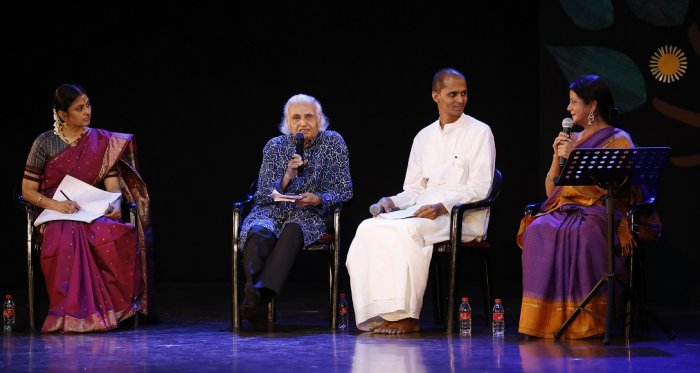 Natya Darshan Day 1 - Sukanya Kumar e-mail: sukanya.kumar91@gmail.com Photos courtesy: Natya Darshan December 29, 2019 The morning of Dec 21 began with a dance procession reminiscent of the days of lore. Once the dancers, clad in white and gold attire, reached outside Bharatiya Vidya Bhavan, they performed a piece, neatly choreographed by Nidheesh Kumar to instrumental music holding electric diyas. The first demonstration by Sasirekha Balasubramaniam outlined the Tanjavur Bani adavu variations of Guru Kittappa Pillai and its evolution since then. Quoting her Guru Prof. Sudharani Raghupathy, she said, "There are as many styles as there are artistes." The demonstration brought out the characteristic firmness blended with fluidity of execution of the Tanjavur style. "When we practice adavus, we are practicing tremendous coordination and concentration," concluded Sasirekha. ![]() A.Lakshman ![]() Viewpoint: Manasvini, Aishwarya Ananth, Vijay Madhavan, Roja Kannan, Priya Murle 'Viewpoint' came next. Roja Kannan spoke from the perspective of being a performer, guru and President of ABHAI. "Patience and perseverance are the key. The mantra is to be clear in mind, have a clear conscience," she said. She stated that out of her multiple identities, the dancer in her overpowered in existence. She counselled dancers to create their own opportunities and find their own finances. Contrary to general opinion that male dancers face many challenges, Dr. Vijay Madhavan felt that for him, dance was an accepted norm. Bred in the Bhagavatha Mela tradition dominated by male dancers, it was but natural for every male child to ascend the stage as Prahalada. He spoke of his Natyagraphy initiative that documents dance encapsulating Bharatanatyam movements. "I dance, because I don't know how not to," declared Aishwarya Ananth Karthik. Talking about the physical and mental challenges that a dancer faces, more so in a conservative family, "all we need is some passive support" to persist as performers. Manasvini Korukkai Ramachandran expressed pride in her dance lineage, "Dance is not a skill, hobby, or profession for me. I picked it up as a language." She justified the need for coexistence of art and science by emphasizing that everything around us must have both utilitarian technique and aesthetic appeal. Melattur Natarajan gave a brief history of Bhagavatamela tradition in the session titled 'Bharatanatyam in Bhagavatamela.' He spoke about the many influences such as tailored costumes, the orchestra position to the right of the dancer, flute replacing harmonium, use of Trikala jathis, etc. and attributed them to the influence of Devadasis. The lecture was followed by video projections and live performance of excerpts from different plays. Sanath Kumar, as Budubudukolavaadu, was fast footed and spirited covering the stage space. ![]() Melattur Natarajan ![]() Sreelatha Vinod 'In Praise of,' the nest session by Dr. Sreelatha Vinod elaborated on the historic origins of Kavuthvams and Sabdams. She compared the positioning of Kavuthuvams in the Margam post the Tanjavur Quartette period to its possible origins as per the Nirupanas (the sequence of presentation followed before the current day Margam). Quoting many scholarly works, she highlighted the salient and lost features of Sabdams. "Kuchipudi and Bhagavatamela traditions have kept the nritta aspect of Sabdams intact," she said giving an example of the Manduka Sabdam. Sreelatha also analysed why the complex talas and ragas got filtered out in Sabdams and today they are most commonly in Misra Chapu talam starting in Kamboji ragam. "After exploring Chatusra and Tisra in the opening pieces and Jatiswarams, the Sabdams could have been chosen to be in Misra Chapu as an introduction of the first asymmetric tala," she explained. ![]() 'Varnam: The different hues' by Meenakshi Chitharanjan "The Varnam is the most non-linear abstract piece performed by a Bharatanatyam dancer," opined Meenakshi Chitharanjan. In her presentation focused on decoding aspects of the Tanjavur Quartette varnams, she brought to the fore the importance of Varnams being "simple, having substance and space." Pandanallur Pandian on nattuvangam, Gomathi Nayagam on vocal, Sakthivel Muruganandam on mridangam and R. Kalaiarasan on violin provided a strong and lively support in her presentation of excerpts from the Thodi varnam of Tanjavur Quartette. "After all the new explorations, performing a Tanjore Quartet varnam is sheer bliss of homecoming," she said. ![]() Bhakti as Rasa panel: Pavithra Srinivasan, Dr. Sunil Kothari, S. Jayachandran and Suman Badami The final discussion for the day was very informative and scholarly, addressing an important topic of 'Bhakti as Rasa.' The panel consisted of eminent artistes and researchers Dr. Suman Badami, S. Jayachandran and Pavithra Srinivasan, moderated by Dr. Sunil Kothari. "The Natya Shastra is over-coded with religion," Dr. Suman asserted. She beautifully compared the Vedic and Bhakti period literatures. Analysing the various texts and research papers on Natya Shastra, Rasananda, and Abhinavabharati, she compared the different approaches to Bhakti and the concept of "the universal one." She attributed the different perspectives to Bhakti to its social construct. Quoting sage Narada, Pavithra Srinivasan clearly explained the concept of Bhakti as the combination of Prema (Kama - personal likes and dislikes and Thyaga - acceptance) and Sharanagati (surrender). She further detailed on the classifications of a devotee into the four categories of Arta, Artharti, Jigyasu and Jnani. Her viewpoint on the concept of Parabhakti was well supported with textual references. Establishing that there are "reached and unreached stages of Bhakti," S. Jayachandran explored the concept Bhakti as a constructed institution. "Just like man, family, society and commune, Bhakti is a result of Sankriti (culture), not Prakriti (nature)," he said. In his usual well researched approach, he 