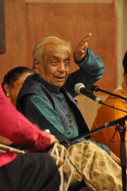 Pt Birju Maharaj creates cherished rasanubhava moments at Saptak - Dr. S.D. Desai e-mail: sureshmrudula@gmail.com February 12, 2020 What happened in the concluding session of the 13-day Saptak Music Festival with even international art lovers in attendance could be a cherished memory for an artist. After two members of the Maharaj family warmed up the viewers on the chilly night of 13th Jan 2020, a special mini stage with steps was put up in the centre for Pt Birju Maharaj (82) to sit and perform and at 1am (yes, past midnight!), the ruling Maharaja of Kathak wearing his characteristic simplicity and smile entered. With his entry all spectators, those on gaddi seats with a little discomfort, right up to the last row got on their feet unprompted to warmly greet him. This was a moment of fulfillment also for Saptak. In forty years, evidently it has developed discriminating taste as also sensitivity for music and dance. ![]() Pt Birju Maharaj & ensemble (Photo: Karansinh Parmar) Mentioning with reverence baba Bindadin Maharaj, the iconic originator of Bindadin-Kalka Gharana of Kathak, the style now prevalent, he set off with Bindadin's characteristically delicate lyric of amour, Mujhe chhedo na Nand ke chhel (Tease me not, O Son of Nand!) dripping controlled and tantalizing sentiment of shringar. The sentiment oozes from the voice accompanied by notes on the harmonium he played. Hand gestures and eyes add to his vibrant facial expression. In Badi der bhayi ghar jana (It's pretty late and it's time for me to return home), the thought was not lost that the prekshak-bhav seemed to be one with the sweet gopi-bhav. The proverbial line from the medieval Gujarati devotional poet Dayaram must have flashed on the mind of many a listener - mukhe neem leedho, man kahe palak naa nibhavu-n... (I'm only swearing an oath, my mind knows I can't honour it even for a moment). Such are the ways of amour, both the young and old, held captive by its expression, lost track of time. In drut laya, the Nayika would teasingly seem to make off and get coquettish with 'Na-hi b-o-l-oon-gi'. Young dance learners sitting packed in front must have felt they were having rare demonstration lessons from their revered guru! It was a treat to steal glimpses at keen and enraptured responses from Panditji's chief disciple Saswati Sen sitting on his left slightly away at the back. His abhinaya was so full of suggestion and freshness. While the thumri on Hori was being sung, she could not help leaving the mini stage and breaking into an impromptu dance in front to 'Tum kaahe ko karat barajori...' (Pray, why do you torment me?) That was a first-rate short abhinaya piece done by Saswati with delight interacting with Birju Maharaj stretching his hand in abhinaya. Viewers showed their appreciation with applause. At the same time, in the informal format of a vocal expression of delicate bhavas with only subtle suggestions for their visible expression that had developed, sensitive rasikas were enjoying the performance at a different level anyway. The invisible Nayak and Nayika with their chhed-chhad they were watching in imagination were made of greater poetic stuff. Images conceived in fancy / imagination in such a context, have a greater lyrical power. A flitting bhava like K'aan, kheloji magar chhoona nahi is perhaps better left to imagination. Formless, with a sweetly stealthy denial of it by the mind, implied it promises a more lasting appeal! ![]() Pt Birju Maharaj ![]() Ipsita, Krishnamohan Mishra