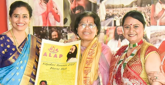 ALAP Mumbai Awards 2020: By Artistes for Artistes Photos: Suresh Muraleedharan April 3, 2020 Kathak at the Art of Living Academy of Performing Arts (ALAP), which was launched in Mumbai, completed its 5th anniversary this year in collaboration with the NCPA Mumbai Dance Season. In 2018, both NCPA and ALAP launched their dance seasons with events spread over Mumbai spanning performances by maestros and students, workshops on dance, talks and discussions on Shastra and sessions on allied arts like makeup, music and videography. ALAP Kathak Mumbai has been graced by Kathak maestros like Pt Birju Maharaj, Pratap Pawar, Dr. Puru Dadheech, Saswati Sen and many others. Started under the aegis of spiritual Guru Sri Sri Ravishankar, ALAP strives to bring about holistic approach to Kathak performance and pedagogy, maintaining deep spiritual roots. Under the directorship of Dr. Manikantan Menon, ALAP Mumbai features a Kathak Reference Library curated by Paullumi Mukherjee, Kathak ensemble coordinated by Sunil Sunkara, authentic Kathak training at the grassroots level by Gayatri Bhat and specialized training for hearing impaired students by Tejas Mehr Desai. While there is always an ongoing debate about how artistes from other metros are ignored by Delhi, ALAP Mumbai decided to answer this question by starting a unique award series that celebrated the work of Mumbai artistes. The jury was a panel of young and senior Kathak artistes from Mumbai. Instituted in the name of Guru Sri Sri Ravishankar, four unique categories of awards were created - NRITYA RAVI for upcoming soloists below the age of 30, KALA RAVI for those below the age of 40 expanding the boundaries of Kathak, VIDYA RAVI for those below the age of 55 who have left a mark on Kathak pedagogy and finally KALA PRACHAAR RAVI for artistes who are striving to preserve and promote art. ![]() Nidhi Prabhu ![]() Sandhya Purecha & Ayan Banerjee Nritya Ravi Samman 2020 was given to Nidhi Prabhu and Ayan Banerjee, both rising stars making their mark as Kathak soloists internationally. Nidhi is taking forward the legacy of her Gurus Dr. Manjiri Deo and Pt Mukundraj Deo and her performances are knows for authenticity and virtuosity with a perfect balance of speed and delicacy. Ayan is taking forward the legacy of his teacher Sandip Mallick and mentors Saswati Sen and Pt. Birju Maharaj. His innovative and unique approach to Kathak strikes a subtle balance between the traditional and contemporary aspects of the art form. Kala Ravi Samman 2020 was given to Lalita Soni, Karan Kishan and Karan Bakshi. Lalita Soni through her body of work has succeeded in expanding the boundaries of Kathak and making her mark on stage as well as screen through her forays into television, films and reality format dance shows. Lalita combines the essence of Kathak with vibrant folk forms as well as popular music forms with a synergy that is unique to Mumbai's cultural ethos. Her work is a testament to her masters, folk legend Indumate Lele, Bollywood maestro Saroj Khan and Kathak legends Asha Joglekar and Pt. Birju Maharaj. ![]() Lalita Soni ![]() Asavari Pawar & Karan Kishan Karan Kishan, a young artiste with a wide spectrum of creativity, is known for authentic and popular dance dramas and choreographies presented by his institution 'Divine Arts and Motion Studios'. The works directed by him retain the essence of spirituality, delivered with a contemporary outlook. Karan Bakshi, as a videographer/editor with Indian Raga, has post produced over 100 classical music and dance videos in the last two years. His work has changed the perspective of classical dance presentation in the social media format. He supports a number of independent artistes and underprivileged students through education based initiatives. Guru Manisha Jeet was awarded the Vidya Ravi Samman for her contribution to Kathak education. In the past 25 years, she has trained more than 200 students who have made their mark in the field of Kathak in India and globally. Her organization, the Manas Cultural Institute, has more than 100 awards to its credit, a hallmark to her standard of excellence. A prime disciple of Guru Asha Joglekar, she embodies the dynamic essence of Mumbai and brings innovation into imparting Kathak to the next generation. ![]() Sunil Sunkara with Karan & Priya Bakshi ![]() Shibani Sachdeva & Manisha Jeet Bhavna Shah was awarded the Vidya Ravi Samman 2020 for her contribution to Kathak Education and Academic Administration. An art catalyst, her skills as an administrator and curator have reflected in the success of all organizations she is a part of. As the Production Executive for Sarfojiraje Bhosale Centre, Executive Director of Kala Parichaya, Chief Administrative Executive of Bharata College of Fine Arts & Culture and Director of the NGO Tejas Foundation, she has been instrumental in fortifying the pursuit of academic excellence. The coming decades will see a revolution in the academic pursuit of Kathak and Bhavna Shah has established herself as a pioneer in making Mumbai ready for this future. The Kala Prachaar Ravi Samman 2020, a unique award instituted by ALAP was conferred on Guru Kashmira Trivedi for her contribution to Art Preservation, Propagation and Promotion through print and online media through her dynamic efforts at The Dance India magazine. She continuously strives to unite artistes together as well as support unknown artistes by bringing them to the forefront. Her continuous efforts in Mumbai have brought together artistes to celebrate art through monthly programs. ![]() Gayatri Bhat, Bhavna Shah & Paullumi Mukherjee ![]() Charushila Golam & Kashmira Trivedi The award ceremony was held at Nath Gagangiri Ashram in South Mumbai, a venue that was surrounded by the flowing ocean on one side and trees and temples on the other. The Ashram has been an active venue for dance as well as meditation programs helmed by senior Art of Living faculty Shibani Sachdeva. The ceremony was graced 