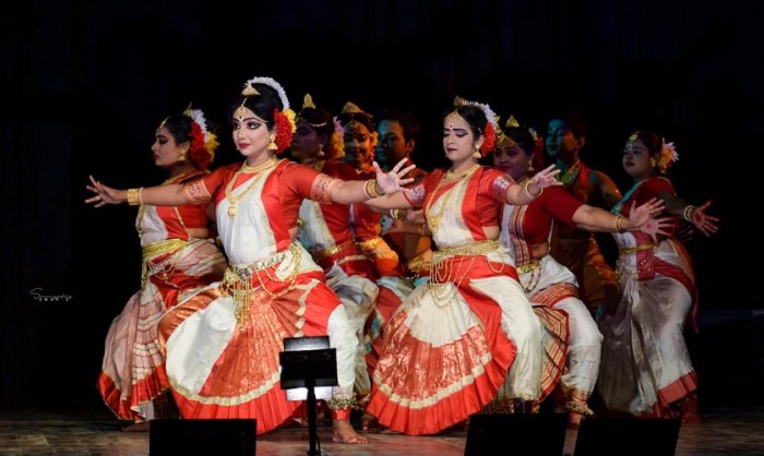 Guru Shishya Parampara-Gaudiya Nritya - Nita Vidyarthi e-mail: nitavidyarthi@gmail.com Photos courtesy: Ashoke Chatterjee & Mahua Mukherjee April 15, 2020 Gaudiya Nritya Bharati, the pioneering institution of Gaudiya Nritya, presented 'Guru Shishya Parampara' to popularize, propagate and establish their search of the heritage of Bengal through an assortment of the less known dance form of ancient Bengal at Sisir Manch, Kolkata, on the first evening and at the Vivekananda Hall, Ramakrishna Mission Institute of Culture, Gol Park, on the second. The revival of the lost dance form by Prof Dr. Mahua Mukherjee, that is supposed to have existed 2000 years ago in ancient Bengal, was the result of her untiring efforts of 40 years, through extensive research of sculptures, literature, including those which traces the origin of Bengali literature (Chorjapad and Nath Sahitya), oral inputs by artists of rural Bengal, Sanskrit texts and old treatises, inspiring her to regard it as a classical dance form of Bengal. Her support was also more than 25 lectures, the 16 odd number of books written by her, a Fulbright Visiting Professorship in 2004, a number of documentary films in India and lectures in US, Bangladesh and India, the latest being the 'Rabindra Chair' at the Dance Department, University of Dhaka, Bangladesh in 2016. Since then, she is engaged in advancing her academic work and research at the Dhaka University in the Departments of Dance, Philosophy, Pali and Sanskrit. Trained originally in Bharatanatyam, her dance compositions of Gaudiya Nritya is supported by her training in the living traditions of Kushan, Bishahara, Chhau, Baul, Nachni, Raibenshe and kirtan which she has learnt from the existing Guru-Parampara traditions and these were strongly reflected in the two day program. Tandava was the predominant element excepting Rituranga which had a strong component of lasya. She is supported in this direction by her Gaudiya music researcher and vocalist husband, Pt Amitava Mukherjee and Gaudiya dancer and research scholar son Ayan. She is the Director of the Gaudiya Nritya Bharati and Mitrayan. The four-hour long evening at Sisir Manch was exhaustive and a marathon display of the different aspects of this now familiar dance form by dancers, seniors and juniors, including a rewarding solo by Mahua Mukherjee herself. The choreography for all items was by Mahua Mukherjee, vocals and music compositions largely by Amitava Mukherjee, percussions by the internationally renowned khol player Harekrishna Halder with instrumental inputs by Ayan. ![]() Gaudiya group The 'Ananda Sandhya' began with the chanting of Vedic Mantra for the "Sandhya Vandana". A large number of young learners in red-bordered white saris, adorned with flowers ushered in the evening through "Nrityanga", some basic steps set to an illuminating "Shovam Karapi Kalyanam, Aragyam Dhanasamprada Dipajyoti Namastutey, Dipa Param Brahma Dipajyoti Janardana Namastutey" followed by the everlasting "Asatoma Sadgamaya…" Senior dancer Kaushik Shaw clad in red, began the recitals with "Chandi Vandana", the customary prayer with Kavi Mukundaram Chakravarty's composition. He entered the stage waving a metal (generally silver) mounted yak tail whisk (chamar) on the right hand and an earthenware plate of flowers (Pushpadali) on the left which he placed on the front stage. And the dancing began with the song "Bande Narayani Bhairabi Ma Bhabani". Since Bengal is known to have about 31 out of 51 Sati Pitha or Shakti Pitha, the worship of Shakti is prevalent in Bengal. So in the rural "Gurumukhi" (oral tradition) traditions of songs, music and dance, the influence of Shakta traditions is strong and Chandinritya, Kalikanritya and others occupy an important place in literature like "Chandimangal" Kavya. A glimpse of all this was offered in the energetic presentation of the highly skilled male dancer. Based on the 150 year-old classical kavya by the acclaimed Dwijendralal Roy, one of Bengal's 'Panchakavi', was the well-crafted Birudha Nritya, "Harihar stuti" by Soumya Bhowmick and Paramita Banerjee. With beautifully balanced choreography anchored to Gaudiya sculptures, the contrasting imagery of the two, Hari and Hara, was unfolded with fine coordination by the two seasoned dancers, retaining full discipline. ![]() Paramita Banerjee ![]() Satabdi Acharya Satabdi Acharya's physique suited the vigorous dancing in Vyasadeva composed 'Shivashtakam.' A confident dancer, one enjoyed her light-footed jumps and the devotion filled gestures in this item. 'Alapchari' based on Krishnadas' Govindalilamritam stotra was a visually beautiful, rhythmic, sonorous pure dance item, with arithmetical precision, set to sargams by a well-trained group of confident dancers who traced complex movement patterns with the music having a touch of 'kirtananga.' There were glimpses of movements with hastas depicting playing of musical instruments. ![]() Mahishasura Mardini Five senior mature female dancers, Satabdi Acharya, Paramita Banerjee, Manikiran Duttagupta, Sayantika Majumdar and Rachana Kar offered effective picture of the Divine Principles of Shakti Aradhana in 'Pancha Mahavidya' (Wisdom Goddesses) based on Kalikapuran. The choreography in this piece featuring Kali, Tara, Shodashi, Bhuvaneswari and Kamala was not sophisticated but had the prowess of tantric influence except for that of Vishnuballav Kamala. But still one got to see variations of lovely padabedas and bhramaris like chakra, chauka, tirjak, utpluta and ufli. The music for this piece has a kirtananga tune with the lyrics embellished with subtle alliteration like "Kanak Kamaley Kanaka Barana" (Goddess with golden complexion seated on a golden lotus). It concluded with the revelation of a compelling Mahishasura Mardini by all five dancers. ![]() Mahua Mukherjee The much awaited solo by Mahua Mukherjee began following the Gaudiya ritualistic Krishna Vandana, "Hey Krishna Karunasindhu Dinabandhu Jagatpathey" followed b