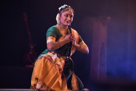 16th Drishti National Dance Festival - Dr. Veena Murthy Vijay e-mail: veenamurthyvijay@gmail.com Photos courtesy: Drishti Art Foundation April 22, 2021 In Bangalore, the pandemic COVID-19 has affected many people, but there are certain mega dance festivals which never stopped. One of them being Bangalore's well known Drishti National Dance Festival organised by the Drishti Art Foundation. The Drishti National Dance Festival is a festival which is every artiste's delight. The art lovers, audience and newer audience definitely look forward to this beautiful annual feast as best of Indian classical dance is showcased on this platform. This year, the organizers Anuradha Vikranth and T.M. Vikranth, did have several challenges in organizing this festival. Nevertheless, the festival was a grand success and Chowdiah Memorial Hall on March 20, 2021 was brimming with packed audience in spite of the COVID scare. Most of the dancers in town turned up to be a part of this festival, a rare but delightful sight. Each year, Drishti's festival is unique because of two things. One, it brings together various young and professional artistes on one platform showcasing different classical dance styles from all over the country. Two, there is always a special theme which is worked upon. These two aspects make this festival more colourful and important for both the viewer and the dancer. This year's theme was "KAVI NAMANA- Celebrating the Poets of our country". Poetry may it be a keerthana, devaranama, bhakti sangeetha or the philosophical poems by various poets of our country were chosen by the artistes and a tribute to the "KAVI" and their "KAVYA" was paid. All this made the evening spectacular. The evening began with Shilpa Nanjappa's Bharatanatyam performance on the renowned composition of Mysore Vasudevacharya. Shilpa has emerged as one of the most beautiful dancers from Karnataka. Her dedicated efforts and constant practice has taken her to great heights. She showed her prowess in her control over angikabhinaya with perfect lines and movements, using the space most optimally yet not ignoring the satvika aspect of dance. In spite of the angular movements, the grace and satvikabhinaya were always flowing into the beautiful sculpted movements of the body. Shilpa has a bright future in the arena of national scene of Bharatanatyam. ![]() Shilpa Nanjappa ![]() Dr. Neena Prasad India's senior Mohiniyattam artiste Dr. Neena Prasad took the stage next. Her graceful movements and poise with the usage of the motifs of Mohiniyattam in bringing out the idea of the composition of Maharaja Swathi Thirunal powerfully was the highlight of the dance. Neena Prasad brought delight to the audience with her performance. This was followed by the significant presentation by the Abhinava Dance Company. It was a thematic presentation where Krishna's pranks were vibrantly displayed by a young energetic group of dancers with colourful costumes, bringing out the snippets of mischievous Krishna playing around with the gopikas. The act of stealing butter though repeatedly seen and enjoyed by the audience, this sanchari brings enjoyment every single time and gives new perspective to the form of Krishna as God. The renowned dancing duo from Bengaluru, directors of Abhinava, Nirupama and Rajendra, being ace choreographers, have shown their expertise in the craft in choreographing this beautiful composition of Leela Shukha's "Sri Krishnakaranamrutam." ![]() Abhinava Dance Company ![]() Sreelakshmy Govardhanan Sreelakshmy Govardhanan, an emerging Kuchipudi exponent from Kerala, presented a piece of Jawali composed by Mysore Sadashiva Rao. In the Jawali, the nayika is questioning as to why her nayaka has not turned up in spite of her being dedicated to him. Generally, the audience looks forward to a quick paced, bright Kuchipudi number and it was rare to see that Sreelakshmy picked a jawali to present on the evening. She did her act well and presented it with prowess and hold over the abhinaya. Next special choreography on the theme of the evening 'Kavi Namana' was presented by the Drishti Dance Ensemble, impactfully choreographed by Anuradha Vikranth. The lyrics were beautifully penned by Shatavadhani Dr. R Ganesh. An interesting simile was adapted by the poet in this composition. He compared the culinary skill of a lady who cooks with great passion by putting in various ingredients in right proportion for a dish to a poet who puts all his thoughts, imagination and dreams into words and churns an equally delightful poetry to bring out the rasa - the rasa, being common to both the food and thought.The dancers depicted two aspects on stage. One where the poet who brings out the various thoughts and dreams that he comes across as poetry churning it out as dramas, character plays, songs and others. On the other hand, a lady who cooks puts in various ingredients like masala, vegetables and many more into the dish making it very tasty. The stage was inter-spread with these two aspects and the intelligent choreography of Anuradha Vikranth brought out the meaning of the composition and the theme very aptly. ![]() Drishti Dance Ensemble ![]() Felicitation of Shatavadhani Dr. R Ganesh The greatest enjoyment and tribute to the poets of the evening was the felicitation to the internationally renowned poet, scholar and multifaceted personality Shatavadhani Dr. R Ganesh. Every dancer in town joined together in this joyous occasion on stage, thanked him and expressed their gratitude for his significant, remarkable and rich contribution to the field of dance not just towards the cultural scene in Bangalore but country wide. He was presented with floral tributes and plaque by Anuradha Vikranth, T.M. Vikranth (curators of the festival) and T.M. Manjunath (chief patron of the organization). The second half of the evening continued with the Bharatanatyam presentation of Chennai's most popular dance ensemble Sridevi Nrithyalaya. They presented the composition 