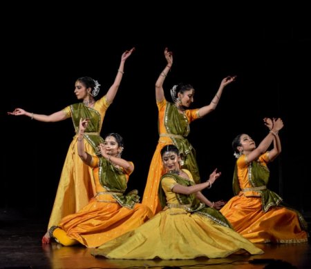 An incessant flow of colours - Manjari Sinha e-mail: manjari@sinha.com March 26, 2023 Kalaagat Niranjan Foundation presented 'Aviral Rang: Vivid Colours of Tradition' at the Stein auditorium conceived and choreographed by Guru Malti Shyam, as a tribute to her Guru Pt. Birju Maharaj. Malti is one of those deserving disciples of the late maestro, who has not only imbibed his delicate grace, rhythmic virtuosity and extraordinary aesthetic sense in her own dance but has also carried forward this precious tradition as a dedicated educator, through her institution the Kalaagat Niranjan Foundation. Malti Shyam had conceived it as a bouquet of her own solo, duet and group choreographies based on the compositions of Pt. Birju Maharaj, as an offering to her Guru and his esteemed tradition, the Guru-Shishya Parampara of Lucknow Gharana. Opening with his poetry on 'Basant Ritu', first recited as a poem that described the spring season as "Ritu Basant chhayo mann bhayo...", with the musical background of raga Basant and then sung as a bandish (Hindustani classical composition) in raga Basant-Bahar that went "Aayo Basant Ritu aayo...", set to teentaal. Danced by her students Gauri Sharma, Aanchal Rawat, Nikita Vats, Shubhi Mishra and Sanskriti Pathak, this group choreography that covered the entire stage in multidimensional sequences, was interspersed with Tode, Tukde, Paran, Tihais and Gat-Nikas.