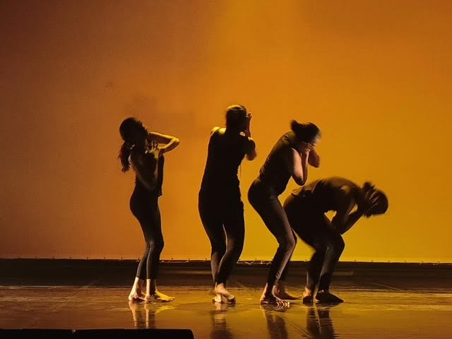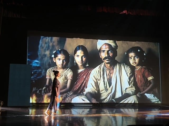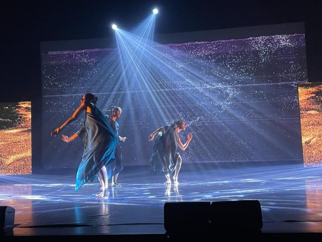 Premiere of Palimpsest Photos: Ajesh Narayanan March 28, 2023 The Natya STEM Dance Kampni premiered its new production Palimpsest at Bangalore International Centre as the headline act of the Future Fantastic festival that took place over the last weekend of March. Future Fantastic was India's first tech art festival and was dedicated to the theme of climate change. Palimpsest, therefore, needed to address the two major global forces impacting us today-climate change and artificial intelligence. To do this, choreographer Madhu Nataraj collaborated with artists with different specialisations both in India and abroad, to create an avant-garde work of dance theatre that urged people to take collective action on climate change. A palimpsest is an object, usually a scroll or document, that has been reused or altered but still bears visible traces of its earlier forms. The earth is human beings' most valuable palimpsest that contains and documents our actions as a species. It has survived many crises, each one etched into its spatial and temporal layers. The production Palimpsest traces our relentless march into the 21st century enforcing successive layers of environmental change, often resulting in desecration of the earth. It highlights how we can only survive this crisis in the Anthropocene, if we must act in consonance with nature. It reminds us how a changing climate and shifting world has left behind myriad climate migrants and refugees. But in their voices we hear the potency of the natural elements-the cornerstones of philosophies from around the world-that must be our guide to rejuvenation and regeneration. Slide show The cornerstones of Palimpsest are two dance sequences by the Natya STEM Dance Kampni, both in the Indian contemporary dance vocabulary developed by Madhu Nataraj. The first sequence evokes the transition from treading lightly on the earth to us scouring the earth with our carbon footprints. In the second sequence, the dancers invoke the elemental beauty of water by reacting to AI-generated music and visuals created by Jiayu Liu studios in Beijing. Jiayu is a media artist known for her immersive and evocative media installations, often recreating the natural world and focuses on relationships between humans, nature, and the lived environment. In a third section, singer and actor MD Pallavi sings a Baul song, shared with Madhu Nataraj, by renowned artiste Parvathy Baul, which reminds us of the people who have been displaced in one of the most climate-change affected places in India-the Sundarbans. The haunting song is accompanied by AI-generated photorealist images of displaced people created by photographer and filmmaker Sam Mohan. Other collaborators in the project include music composer Dheerendra Doss and photographer and filmmaker Bhushan Bagadia. The performance included Roopa K, Adrika Subhash, Deeksha Kumar and Yonita Jain. Scripting team was made up of Harsh Purohit of Cognito, Nayantara N with Madhu Nataraj. Kampni's Keerthi Kumar was tech director for the production and co-composed music for the prologue. Costumes were designed by Madhu Nataraj and Ramya Nagaraj. The production consulted eminent researchers TV Ramachandra at the Indian Institute of Science and Harini Nagendra at the Azim Premji University, among others, on current issues in climate change. The Future Fantastic festival was organised by the UK-based arts foundation Future Everything and the Bangalore-based tech arts platform called BeFantastic curated by Jaaga, which builds and supports collaborative communities of creatives. |