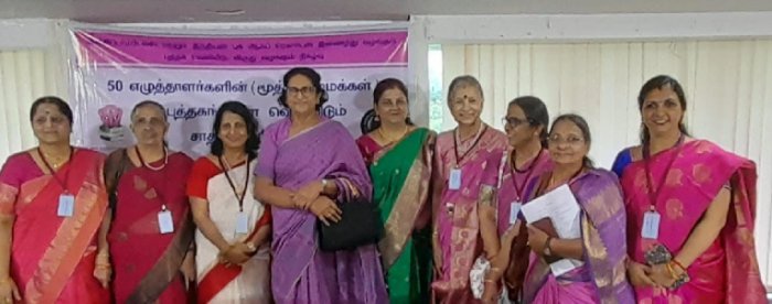 62 books by 50 authors released by Pachyderm Tales August 24, 2024 "Where woman comes, comes Art. And what is Art, if not the effort of humanity towards divinity." - Mahakavi Bharathiyar What a day to remember - 18th August 2024! A special book launch event followed by an award ceremony commemorating the publication of 62 books by Pachyderm Tales was held at Anna Centenary Library, Chennai. Pachyderm Tales entered the All India Book of Records by publishing 62 books in Tamizh, written by nearly 50 senior citizens, within the span of one year. The team Ashtalakshmi is one of the seven teams who took part in this project. Rajeswari Iyer, Padma Raghavan, Vanaja Muthukrishnan, Usha Kannan, Rukmani Venkatraman, Jayanti Badhri, Uma Swaminathan and Nandini Lavanya Murthy form the team Ashtalakshmi. Out of the 62 books, the team Ashtalakshmi has written the highest number of 15 books. Enaindha Kaigal team, Pasa Paravai team, Malarvanam team, Saranagathi team, along with Radha Ashwin have all contributed towards this successful event. These books are all a collection of short stories on Forgotten Fine Arts, traditional games of India, stories for kids on healthy diet and habits, virtues, and patriotism. There are also stories of unsung heroes in our epics, celebrating differently abled people, their success stories, interviews of women achievers and more. It was founder Dr.Lakshmi Priya and co-founder Uma Aparna of Pachyderm Tales's initiative to invite senior citizen writers to write stories to convey their experiences, which will contribute to building a culturally strong younger generation. The main aim is to educate children on our family values, virtues, patriotism, good health and diet via short stories. ![]() "It is our new initiative to have senior citizen writers .We feel that senior citizens are a source of knowledge, influence, mentoring, and friendship. This, we thought, will contribute to building a culturally strong younger generation. It is very nice to work with them. We got a chance to showcase this talent of theirs. They were wondering if they were so talented. They overcame many challenges and came up with stories that were exemplary. We have entered the India Book of Records by publishing 62 books written by 50 senior citizens, within the span of one year." says Uma Aparna with pride. Awarding all the 50 authors, all of them senior citizens above 70, recognised by the All India Book of Records was a glorious moment to cherish. The team Ashtalakshmi was awarded a Lifetime Achievement Award. For Rajeswari Iyer, receiving the Lifetime Achievement Award, Certificates and a medal from All India Book of Records, and a "Best Innovative Story Writer Award" from Pachyderm Tales was an overwhelming moment. "I haven't received a single medal or award till date and here I am with such prestigious recognition. Transition to transformation, my journey has brought many great moments and this one is the best of all," says Rajeswari. Dr. J. Radhakrishnan IAS, secretary cooperation, food and consumer protection, Bhamathi IAS, Ex MP, and author Rajendran, eminent writers and journalists, screen artists, anchor and news reader DD Shanthi Jagathrakshakan were among the celebrity guests who released and received the books. The dignitaries and audience applauded the efforts of the teams with the leaders Uma Aparna and Dr. Lakshmi Priya for this achievement. Dignitaries encouraged and motivated the writers to continue their journey as authors and boosted their confidence to attempt entering Guinness records. ![]() An amazing audience, mostly from the literary field, was a great encouragement to the writers. To see all their stories in printed book form adorning the book shelves made each of their hearts swell with pride. One set of these books will now be on the shelves of Anna Centenary Library for readers' delight with a wide variety of stories in different genres. |