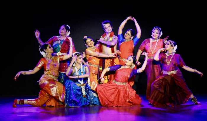 The eight Praana Sakhis of Lord Krishna- Vijay Shankere-mail: vijaydance@gmail.com Photos: Gokul Centre for Cultural Education October 23, 2025 The Gokul Centre for Cultural Education of the BSKB Association, as part of the 100 glorious years of the Association, organised a unique programme in the Bharatanatyam format. 'Praana Sakhi' incorporating the eight Praana Sakhis whose life and devotion revolves around Lord Krishna and Radha Rani, was conceived and directed by noted scholar and presenter Dr Usha RK. Eight classical dancers along with the lone male classical dancer, who donned the role of Lord Krishna, performed to the delight of the audience at the Saraswati auditorium in Sion, Mumbai on September 13. ![]() Arundati and Sagarika Patwardhan Erudite in the 64 Arts, every thought and action of the Praana Sakhis is solely aimed towards the happiness of Lord Krishna and Radha Rani. The eight Praana Sakhis are Chitra, Sudevi, Lalita, Tungavidya, Champakalata, Rangadevi, Vishakha and Indulekha. The first number was the Kautvam, followed by the amazing "Swagatham Krishna" performed by Arundhati and Sagarika Patwardhan and Lord Krishna was enacted by Mumbai's leading male classical dancer, Pavithra Krishna Bhat. The mother-daughter duo performed well incorporating Chitra and Sudevi, while celebrating every moment of the divine presence of the Lord and their devotion towards him. Chitra is adept at playing with musical pots that is filled with varying degrees of water; she has knowledge of astronomy and astrology and enjoys the intimacy of birds, animals and nature too. In the spiritual realm, the Gopis of Braj enjoy a position higher than that of the creator Brahma and the protector Vishnu. The five main characteristics of the Gopis are, they possess intimate knowledge of the divinity of Lord Krishna but they do not reveal it. They adore Krishna as their beloved, they surrender everything including their self, selflessly. They completely reject the value of self-happiness and most importantly, their happiness and actions revolve around Lord Krishna and Radha Rani. ![]() Vaidehi Rele and Trusha Panchal ![]() Kavya Kasinathan and Sneha Bhagwat 'Leela Vinoda' with the two episodes were compactly delineated. The reaction of the Salvis in Kaliya was superb, the Kaliya Thillana recitation and performance was noteworthy. Shringara Leela from Sakhya, teaching the mridang and elevating Radha's musical sense to match Krishna in order to enhance their togetherness was a beautiful idea, followed by the ashtapadi. "Sa Virahe" was more than magical, the expressions struck numerous chords and the icing was "Priye Charusheele" in which Krishna completely surrenders to Radha. It was interesting to watch the transition from sringara to sringara bhakti culminating with the Maha Raas. The preparation of Maha Raas, especially the inner cleansing and associating each chakra with the specific jewel was unique. The Dandiya set the stage for the Thillana which represented the "one for each" concept perfectly matching with the "naama sankirtanam" and concluded well. ![]() Keerthana Ravi and Sayani Chakravarthy Kavya Kasinathan and Sneha Bhagwat appeared as Champakalata and Rangadevi and were among the best performers. Keerthana Ravi and Sayani Chakravarthy appeared as Lalita and Tungavidya. Vaidehi Rele and Trusha Panchal portrayed Vishakha and Indulekha. ![]() Vidya Harikrishna rendered commendable musical support and musical compositions too. Sujesh Menon lent vocal support appropriately, with mridangam by Prajesh Nair and flute by Raghunandan. On the whole, it was unusual and unique with a fine set of dancers. ![]() Vijay Shankar is a Kuchipudi and Kathakali exponent, teacher, bilingual journalist, arts critic and actor. |