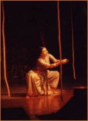 The dance scenario at present demands the dancers to stretch their limits and look at new themes, new forms, novel presentations and even old wine to be given in fancy containers. The outcome therefore is the emergence of a whole new body of ideas and forms. Themes unheard of earlier are being presented. The fact that a more receptive, open-minded rasika is willing to watch these experiments provide energy levels to the artiste. Anita Ratnam is one such dancer who is constantly trying out new idioms with boldness and conviction. In the context of the Indian psyche, it calls for a rare courage to create a work on the theme of death. Anita’s latest work ‘Vaitharani’ looks at the subject of death from the point of view of Hindu philosophy of looking at death beyond the mere physical. The first segment ‘Marali’ which means the God of Death, brings out varied aspects on the subject in a folk tradition of story telling. Revathi Sankaran as the storyteller unfolds the mysteries of the beginnings, the vacuum therein, the emergence of Ashta Digbalakas or Lords of the 8 directions governing various aspects of life. One of them is Marali, or Yama, the God of Death, whose presence is a part of life. The visual imagery for this story is captured by a group of young dancers. The characteristics of the Lord of each direction, is portrayed with kama or union of male female attaining prominence over others, lending to transformations in evolution. A combination of sollukattus and folk rhythms bring out the ideas of the time cycle effectively. Revathi Sankaran’s use of appropriate songs from old Tamil film hits adds a lighter vein to the narrative. Yama is portrayed