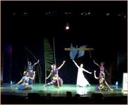 narrated to explain the story, to the sounds of ghungroos and the ghatam.