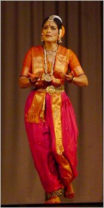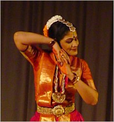 SHRINGARA VAIBHAVAM - a dance presentation by Geeta Chandran, New Delhi Opening with a verse that celebrates Shringara Rasa, Geeta Chandran presented two verses from Kalidasa’s Ritusamharam. Geeta then performed an alarippu composed by London based mridangam vidwan Karaikudi Krishnamurthy who accompanied her on the percussion. The center piece of Shringara Vaibhavam was a varnam in the ragam Latangi, Adi talam, a new composition of Durga Prasad. To represent the feelings of male shringara, Geeta presented verses from a twelfth century text - Chaurapanchasika - written in Sanskrit, by Bilhana. For this, Geeta drew inspiration from the Chaurapanchasika miniature paintings from the collection of the late N C Mehta. The program concluded with a Raas dance based on the works of Haveli sangeetkaars of Rajasthan and Uttar Pradesh. The music was composed by Vasanti Krishna Rao, who provided the vocal accompaniment. Geeta’s costume