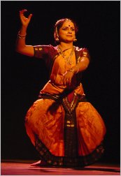 Hasya, a dance theatre production by Indira Kadambi, Chennai Bharat Kalachar, Chennai presented Hasya, a dance theatre production conceived and choreographed by Indira Kadambi on January 6, 2004. It was an evening with a difference; it was designed to revive our natural abilities to laugh. The announcer T V Ramprasad said, “Life is serious enough, so let us not lock away our laughter and make it even more serious and unbearable. Laughter is your greatest qualification to face life, whether you are laughing at yourself or at life itself. Look around you. There are so many things worthy of laughter – language, culture, environment, society, politics and people, even the gods. Enjoy, but at the same time be alert to catch the truth hidden behind the laughter.” The program started with a Pushpanjali followed by a keertanam on Lord Ganesha, described as the son of Shiva and Parvathi, one who rides on a rat and has a snake as his ornament. Indira portrayed Ganesha as a chubby figure with a huge belly, moving with appropriate gait while the lyrics were interspersed with lines like ‘riding a rattu, tying a serpentu’ and ‘having the face of an elephantu!’ The English words blended so well with the original lyrics that only a keen ear could distinguish them. The next item was on Lord Shiva and his family problems for not even the gods can escape from the institution of family and the associated tensions. Indira presented a story based on an ancient humorous Sanskrit verse. It was about the jealous quarrels between Shiva’s wives and Shiva’s sons, how a hassled Shiva is driven to drinking poison and in a dramatic finish, Parvathi catches Shiva’s neck to stop the poison from spreading. The characterization came through in the form of the rat and peacock for Ganesha and Muruga, snake and lion for Ganga and Parvathi. The depiction of the animals and their natural enmities towards each other were good, but a lot of editing is needed to make the narrative more interesting and more understandable. The last item was the highlight of this evening of humor. It was presented as an ‘earth report’ by Narada, who was sent to planet earth by Mahavishnu to witness the goings-on. “All characters in the production are fictitious. Any resemblance to the real is purely coincidental,” was the tongue-in-cheek announcement. Narada saw the dance of the Africans in their continent, the Hare Krishnas dance to their mantras in America, and the local Chennaites mime their mantras for more money and more material goods. The dance pupil being instructed in highly accented English, the dancer making her stilted announcements and the dancer throwing tantrums on stage had the adults and especially the children in the audience, rolling with laughter. Indira did not spare anyone - the autorickshaw driver fleecing the passenger, the corporate who makes a hasty salute to the deity from the confines of his car as he drives past a temple, as well as the avaricious temple priest were subject to her humorous interpretation. The idea for presenting a contemporary theme like this in the form of a dance theater (as she is quick to point out) came to her two years back when she was observing people while waiting to catch a flight in an American airport. Indira proved in her presentation that she has a great flair for comedy. The orchestral support for the performance were Vinod on violin, Praveen Kumar on nattuvangam, Ramesh Babu on percussion (mridangam, tabla, chenda and ganjira) and Indira’s husband T V Ramprasad on vocal. The music for the evening was composed by Ramprasad, special effects/dialogues were by Jaya Rao and Akila of Koothu-P-Pattarai and lights by Venkatesh. As with every