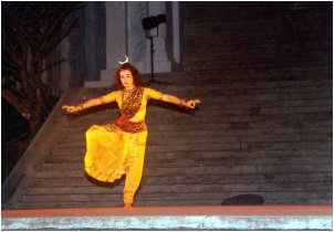 Keeping in tune with the intentions of the organisers to present every year one contemporary interpretation of a particular dance tradition along with traditional troupes of martial artists, the Samudra group led by the talented duo Madhu Gopinath and Vakkom Sajeev, presented its own original choreography ‘Sound of silence’. The work evolves through different stages creating a sort of visual collage, which through an impeccable technique borrowed from martial and traditional art forms of Kerala, seeks to create a dialogue between movement and sound, tradition and modernity. Particularly impressive was the descent from the rope at the beginning of the play and the climb at the end; with the white stupa in the background and the vast expanse of stars on the top, the impression was that of a flying angel coming from and returning to the sky. There are several myths to explain the origin of kalarippayattu, the martial art form of Kerala, believed to have originated in early 4th cent. A.D. According to some it was instituted by Lord Parasurama in order to defend the land of Kerala which he himself had reclaimed from the Arabian sea. According to others, it was invented by goddess Parvati when she went to assist god Shiva during his tapas in the jungle. It seems that while waiting for her husband to wake up, she studied the movements of the fighting animals and wrote them down on the lotus leaves. At the end of his tapas, Shiva saw the notes and became so impressed that he decided to teach the technique to the devas for their fight against the asuras. The CVN Kalari was established in Calicut in the year 1945 by late Sri Narayanan Gurukkal who, along with his counterpart Sri Govindan Kutty of Trivandrum, was responsible for bringing the art of Kalarippayattu to limelight and to propagate it all over the world through stage presentations and lecture demonstrations. At the Kalinga Mahotsav the group, lead by Sri Narayanan’s son Sunil Kumar, presented items belonging to the three phases of training, the ‘meythari’, a set of body exercises to attain control, balance and stamina, the ‘kolthari’, which includes fighting exercises with various types of wooden sticks and ‘ankathari’, which concentrate on attacks and defence using metal weapons like dagger, sword and spear. The entire team demonstrated to be extremely competent in all the different sets of exercises; speed, precision, agility and an acute sense of concentration marked each stage of their performance . If kalarippayattu contributed largely to the development of more known art forms of Kerala such as Theyyam and Kathakali, the phari khanda technique of attack and defence developed in the district of Singhbum (now in Jharkand, once upon a time in Orissa) was determinant for the formation of what later on became known as Seraikhella and Mayurbhanji Chhau dances. The area where phari khanda developed was originally a dense forest inhabited by various tribal communities mostly dedicated to hunting activities. Once recruited by the royal dynasty as soldiers for the defence of the kingdom, these tribals carried with them the habit to cover their faces for protection while fighting or killing. Along the years with the development of the form of dances, the masks also underwent many changes until they were totally discarded in the Mayurbhanji style whereas they were brought to extreme refinement in the Seraikhella one. The Acharya Chhau Nrutya Bichitra, founded by late guru Lingaraj Acharya and directed at present by his younger son Sukanta Kumar, presented during the festival various items based on the phari khanda technique. Although the themes of the items suggest martial attitude, the movements of the dancers were slow and repetitive; due to the obstruction created by the masks, the dancer’s ability to see and breathe was quite limited. One would have liked to see some demonstrations of the attack-defence technique in its crude form as it is practised in this area without the use of the masks. It was in any case a good example of how a dance form evolves out of a crude martial exercise; of how music and choreography intervene in the process of transformation and how real swords and weapons give space to fake ones once the fight is shifted from the akhada to the stage. What perhaps
