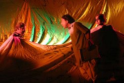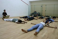 Dr.Gilles Chuyen from France with ‘Self-Ritual’ was a refreshing change after this. Dressed in a long flowing white skirt and a brief jacket, Gilles traveled in time and space through a growth of movement cycles that traced a development of thought from youth to maturity, guilt to absolution, fretful exploration to acceptance and serenity. The piece ended with searching visual of a man, stripped of all external embellishment, in peace with himself sitting amidst gentle candlelight. Ending the evening, ending INTERFACE 2004 and looking ahead to INTERFACE 2006 was the structured improvisation by Y-Space Dance Company. Starting from the empty space behind the audience, weaving through the audience, using the audience and the chairs as props, the duo Victor Ma and Mandy Yim from Hong Kong showed how their severe training in classical ballet styles was absorbed and rejected in the search of a strange improvisatory dance language which was free, open to interpretation and open to experimentation. The festival ended with a vote of thanks by the directors. The audience I am sure would be as keen to welcome INTERFACE 2006 as the artistes who would be keen to come down; winds of change in a new orange dawn, may INTERFACE prosper. Workshop
