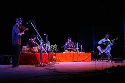 on the guitar, to strings from the santoor by Sandip Chatterjee led by