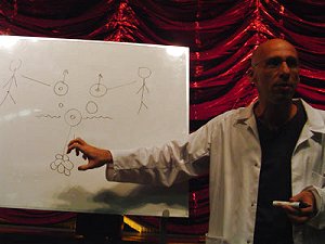 out as a science lecture on the types of cloning, gets steered into an