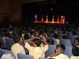 Added to performances in the metro cities, Astad and the girls wanted to share the work with children of deaf schools. So, the morning of Dec 9 saw a nearly 600 strong audience of deaf children from six Chennai schools, as well as students of Padma Seshadri High School. The children sat in rapt attention through the one-hour program. At the end of the show after lots of hand waving to show appreciation and applause, every child, big and small, made a beeline for the stage to shake hands with Astad and the dancers - an absolutely amazing and over-whelming experience. It was indeed a wonderful world premiere for Contraposition. (Presented