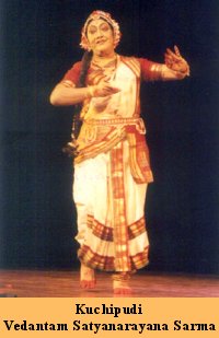 It’s rare that one gets to witness a Kuchipudi performance where men essay all the roles. While there always are apprehensions on how well a man can masquerade as a woman, Vendantam Satyanarayana Sarma set all doubts to rest. Though a woman portrays a female character naturally, a man suffers from exaggeration in abhinaya and in the body language while enacting the role of a female character. Guru Vedantam Sarma deftly handled that. The dialogue