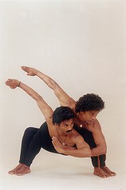 of forms blended beautifully as one dancer balancing over another in acrobatic