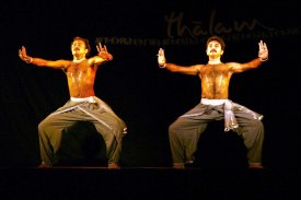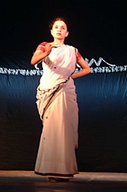 Indeed, the cultural capital of Kerala, rooted in age-old traditions of theater and dance went through something new. A SLIPPING GLIMPSE is a group item, a joint venture. The introductory item opened a new horizon that showed how dancers from diverse cultures generate movements for a specific idea. A voice in the background sang, "of knowing no language, of the inability of utterance when hungry, of collapsing walls in human relations," outlining its theme. And human bodies swayed creating kaleidoscopic images like the stuff of which life is made. If an abstract painter paints a highly personalized poem and you glimpse intimations from your own self... Well, here is an art, of fleeting moments whence the audiences meet the artists half way deciphering a puzzle generating multiple interpretations. Here, in the place of a still canvass that communes with the viewer, the stage is an arena of flux. "I believe that dance is another way of seeing, a way of experiencing a thought, a feeling and observation," says Margaret Jenkins.