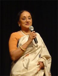 Bharatanatyam has still not seen its peak. Her work Banyan Tree is a research focused theme, linked to research in Bharatanatyam. “We seem to go back only to mythology for our choreographic work. To depart from it is very challenging. It requires a lot of thinking.” Whenever she gets an idea, she works for months on the script. In Chaturanga, she incorporated Subramania Bharati’s songs and wanted to incorporate some Gandhian thought. As a choreographer, it was a challenge to get a set of dancers to make a visual impact on stage. “Too many on stage, does not work for me. A less number on stage makes better impact. I try to keep the stage free to play around with the design of movement, to create the atmosphere of what the song is trying to communicate.” Video excerpt from Chaturanga was shown. Lakshmi Viswanathan finds it difficult to select a Hindi song and do Bharatanatyam for it. It is easier to perform to Tamil lyrics and her favorite is Bharatiyar. She was happy that she performed to Vande Mataram before A R Rehman’s version popularized the song among the youth. “Only for the last 15 years, I have taken to the larger canvas of group choreography. I believe in minimalism. Clothes should not hamper movement, and jewellery should not hide the face or expressions. Emotions should not be lost, yet at the same time should not be exaggerated. Suggestiveness is the very essence of Bharatanatyam.” And the Natya Darshan V seminar on women choreographers came to an end. |