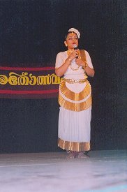 The second item was 'Vathil thura pattu,' a javali composed by Kutti Kunji Thankachi, the sister of the celebrated poet, Irayimman Thampi. The song was in ragamalika set to Adi tal. Deepti is the first dancer to attempt a javali in Mohiniyattam. As in other south Indian dances, the dancer portrays a khanditha nayika. But, here she is noble at heart; she accepts the all-embracing love of her Lord. The third item, a padam by Swathi Thirunal used a rare raga, Poorvakambodiri. The Samvadam between the lovelorn nayika and her sakhi who betrayed her trust are two facets of womanhood. The rendering of the story of the unfulfilled-love of Malikapurathamma was fitting to the season of Mandala puja in Kerala. She tells her sad tale to the trees and plants, to the birds and animals of the mountains. When Ayyappa delivered a demoness from her curse, the beautiful maiden fell in love with him. Ayyappa promised to marry her the day when a new pilgrim does not reach his forest shrine. Year after year, she waited with her bridal garland for the promised occasion, and now after ages, here is another deity made by endless pilgrims. The piece was in Saveri raga, set to thripuda tal. The last item, Ardhanariswaram is an old poem of unknown authorship set in raga madyamavati. This beautiful piece, on the blending of male - female principles, takes the audience on the wings of a devotee to Kailash, the home of Siva and Parvati. Its rich devotional strain is typical of Indian traditions. Deepti's elevated style, restraint and subtlety made the performance an aesthetic treat. From another angle, her recital addressed her concern to have an exclusive Kerala dance form. Perhaps Kerala is a unique state where women and their ethos get prominence whether in social or cultural spheres. For a female classical solo, a talented dancer with a strong sense of music and depth in the Kerala musical instruments has to take up the torch from Deepti in the next lap to perfect and popularize Mohiniyattam on its classical lines. Bharatham, a cultural organization in the cultural capital of Kerala, is doing service in addressing such concerns for public awareness. Padma Jayaraj is a regular contributor to narthaki.com |