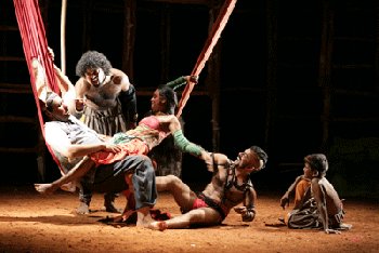They always end up as nightmares. So, it could be something which started as a dream and ended as a nightmare. Well, when you wake up and try to reconstruct the dream, many thoughts emerge, some pleasant, some unpleasant, some remarkable, some avoidable. Like a dream, it is pleasant and unpleasant, it is exciting and dull, in short it is a mixture of feelings that assails one's consciousness when one wakes up from a dream. That is what this writer felt after watching "A Midsummer Night's Dream" directed by Tim Supple and produced by the British Council and Hutch. Usually when I write a review after watching a play, I start my comments with the script, go on to the technique of presentation (direction), quality of acting and then end up with some casual comments on stage, sets and props, lights and costumes. But, in this case I would like to use the reverse approach and start with the sets and props, lights, costumes, music (which in the normal sense of theatre reviewing can only be treated as "enhancing factors" to the theatrical presentation) and then go on to the more serious aspects such as script, direction and acting (which I consider as the essence of theatre). The reason for this approach is that the most stunning or absolutely breathtaking feature of this play, were the sets, lights and costumes in that order. Literally and truly the stage provided the direction and guidance for the actors and their actions. It was not just a backdrop or a space to perform, but an instigator and a promoter in the structure and acting. In fact, without the stage as it was constructed, the actors could not have performed many of the feats that they did. I do not know whether the experimental nature of the play called for the kind of stage that was provided or the stage in many ways offered the scope for the kind of acting and action that was showcased. In any case, as far as this play goes, the stage was not merely a stage, but a supporting actor.