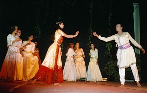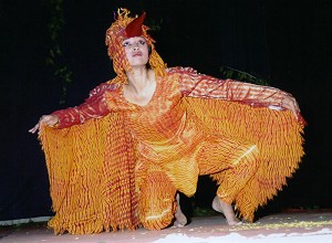 The story of Firebird is based on a popular Russian fairytale. Ivan Tsarevitch, a prince happens to stroll in a magic garden. He sees a flock of supernatural heavenly Firebirds resting in the place. Enchanted by the beauty of the birds, he sets a net to capture them. One of the birds is caught. The captured Firebird requests the prince to set it free, and in return, promises to help the prince in distress. Under this understanding with the Firebird, the Prince lets it free. The bird hands over to the Prince a quill from its feathers before flying away. This quill has the magical powers to bring the bird in front of the Prince. The beauty of the garden attracts thirteen princesses and they come to the garden to spend some time there. Eventually they are kidnapped by a villain by name Kashchei. Our good Prince Ivan comes across the captured Princesses and tries to release them from the clutches of the villain. In the process, he falls in love with one of the princess Tsarevna. But Kashchei and his evil forces capture the Prince too. The Prince remembers the promise of the Firebird and he pulls out the quill and calls the bird. The Firebird immediately appears and helps the Prince to demolish the evil forces and kill Kashchei. The story comes to an end with the happy union of the Prince and the Princess. The lead role of Firebird was enacted by Keshava's elder daughter Anjali and that of the prince was donned by Chetan Hebbar of Mysore. Keshava was the exorcist king Kashchei. The entrance of the Firebird and that of the evil king thrilled the audience. The movements of all characters, around a dozen, were superbly synchronized to the tune of Igor Stravinsky. There was never a dull moment throughout the action packed hour and a half. Keshava and