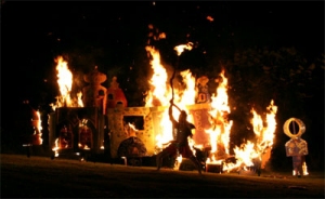 real, blazing bonfire on the hillside. The audience did not just see the