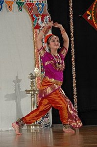 Shilpa was a picture of confidence throughout. She started her performance with a Mallari and Kauthvam. These are invocatory dances to set the mood of piety on stage and in the minds of the audience. The dancer sought the blessings from the Gods, spiritual masters, gurus, accompanying artists and the audience. The Jathiswaram followed this, where Shilpa demonstrated her mastery over the dance fundamentals. Traditionally, this item is also a "warm-up" for the main items that follow. The next song "Ananda Natamaduvar Thillai" sung in the beautiful ragam Poorvi Kalyani is an all-time favorite among dance connoisseurs. The song is in praise of the Lord of Dance, Shiva, who was present on stage in Thillai blessing the devotees who came to witness his cosmic dance. Varnam is the most complicated piece in any dance performance. It combines all aspects of dance in one song. Bhava, Raga and Thala come together in this item. Shilpa's rendition of Lord Krishna eating mud and showing the entire world to her mother Yasoda was charming. It was a treat to watch Shilpa alternate from being Krishna in one moment and Yasoda in the next moment changing her facial expressions and body postures rapidly. When the artist crosses the Varnam in an Arangetram performance, she is a lot more than half way to a successful finish and so far, Shilpa had passed with flying colors. The Mahalakshmi Ashtakam was the next item in praise of Goddess Lakshmi. This song gave ample opportunity to Shilpa to display her skills in bhava as each of the Ashta Lakshmi. The story of Adi Sankaracharya singing the Kanaka Dhara slokam was elaborated while describing Dhana Lakshmi. The next dance number was a special treat for the residents of South Florida. This song was a composition of Shilpa's grandmother Vasumathy Swamy, in which Shilpa displayed a playful mood and joyously invites Lord Muruga to come to South Florida and play with her. This song set to raga Brindavana Saranga, was sung by Swamy herself, adding a warm touch to the entire concert. At the end of the song, Shilpa portrayed Lord Muruga as coming to South Florida on a peacock, much to everyone's delight. Being a family of Bhagawan Sathya Sai Baba devotees, Shilpa's dance performance would not be complete without a song praising him. When Shilpa took the Padukas of Sri Sai Baba in procession, it moved many in the audience. The final item of the performance was Thillana in which Shilpa demonstrated her mastery over the nritta aspect of dance and speed without missing a beat. The dancer transformed herself into many sculpturesque poses. The program then concluded with Mangalam. Live music for a dance performance is very essential. Being the disciple of musical genius Balamuralikrishna, vocalist Sudev Warrier demonstrated his extraordinary talent through the entire performance with his divine voice. Sangeetha Sridhar, the mother and guru of Shilpa, ably provided Nattuvangam. Sudhaman on the mridangam showed a lot of energy and precision. Krishnaprasad on the flute took us all to a special plane. On the violin was our very own talented Sanjay Chandran of South Florida. Swetha Vittal Prasad kept the audience informed with adequate explanations for each dance item. The video presentation after the intermission about the growing years of Shilpa was entertaining. A new star is shining in South Florida and the audience got up in the end for a well-deserved standing ovation. The decorations made by Vijaya Para and her team of volunteers were aesthetic as usual. The kolams, lamps, pictures etc at the entrance to the hall took us to some place we have all been to in India. The elegant decorations on stage provided good ambiance and enhanced the dance performance. Arangetram is not a goal but a stepping-stone in the path of an artist. Having successfully completed her Arangetram, we all hope Shilpa will continue to learn and perform in South Florida and elsewhere in the world. Talented youngsters like Shilpa become the focal points for the spread of the Indian art form in the Western world. Through their continued efforts and performances, they inspire other youngsters and help keep the art alive. May Lord Nataraja bless Shilpa with continued success. Hearty congratulations to Shilpa's family for working hard to identify and bring out her talent. |