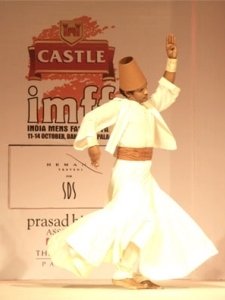 always pointing towards heaven and earth, in an authentic Sufi costume.