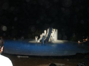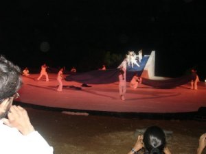 scene. The dancers beneath the huge canopy, who emerged on to the stage