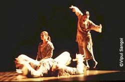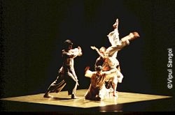 The collaboration with the Pittsburgh-based company and Arangham Dance Theater from Madras, India created a unique blend of American modern and traditional Indian dancing in the piece "Dust." Mysticism swept over the stage as Anusha Subramanyam's slow, deliberate movement transfixed the audience. Her unwavering focus revealed an internal power not seen in the American dancers - a difference more of style than technique. Dance Alloy's Mark Taylor worked with Anita Ratnam of India to bring the two cultures together, using an original composition by Alice Shields. Together, they created an excellent balance and smooth transitions between traditional movement and abstractions from that. The mood switched back and forth from solemn to playful with the image of dust sprinkled throughout the piece. Taylor based the piece on a Joan of Arc-like figure in Buddhist history, but there was no storyline. Instead, it was the strength of Subramanyam's pace diagonally across the stage that signified the strength and vulnerability of women. The dancers' different cultural styles became apparent when the four danced together - two American and two Indian. The Indian dancers held their torsos tall and straight in a regal manner, whereas the Americans tended to begin all movement of extremities from their torso. The Indian dancers' quick flickers of the wrists and ankles was more staccato than those of the Americans. And the Indians seemed to focus internally, whereas the Americans danced more aware of each other and the space around them. This is less a criticism than an observation - one that was interesting to see. The mix of American and Indian cultures carried through in the costumes - a blend of loose-fitting pants and shirts with rope-tied vests in Indian fabric. The music, however, stuck too close to tradition and often was piercing to the point of distracting from the dance. The high-pitched sound was even painful at times. Still, "Dust"