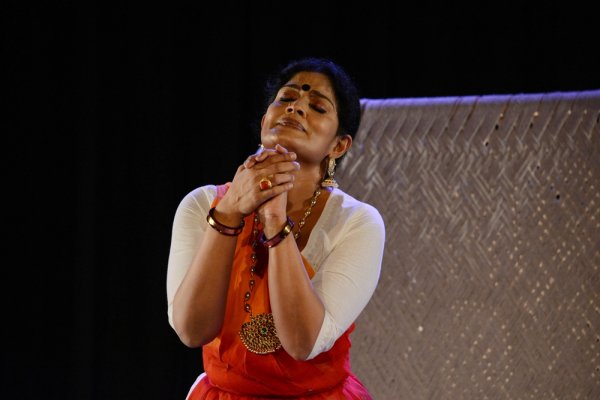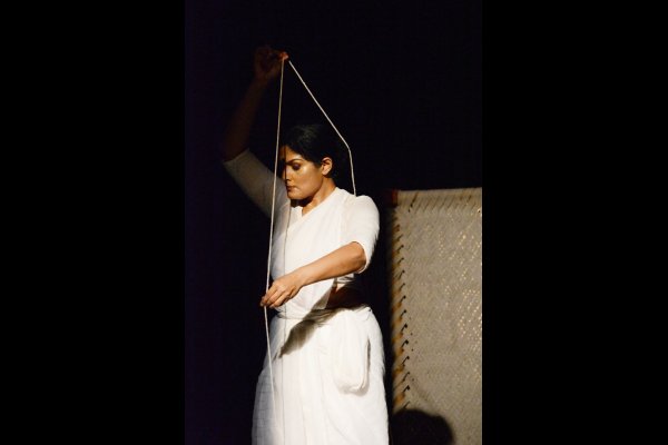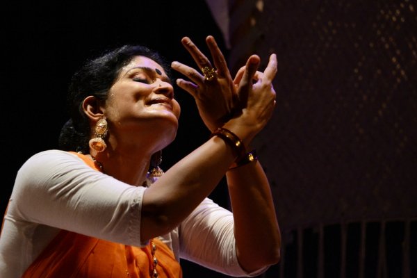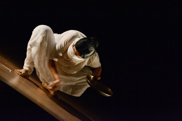 Geeta Chandran in her new abstract dance work GANDHI: WARP AND WEFT at Jawaharlal Nehru University, New Delhi on Aug 17, 2012